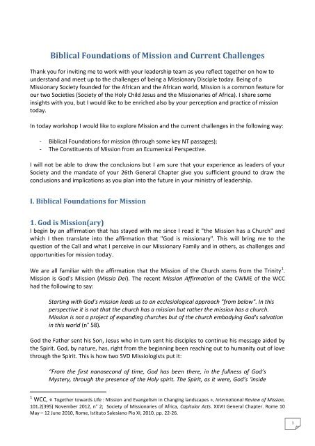 Biblical Foundations Of Mission And Current Challenges